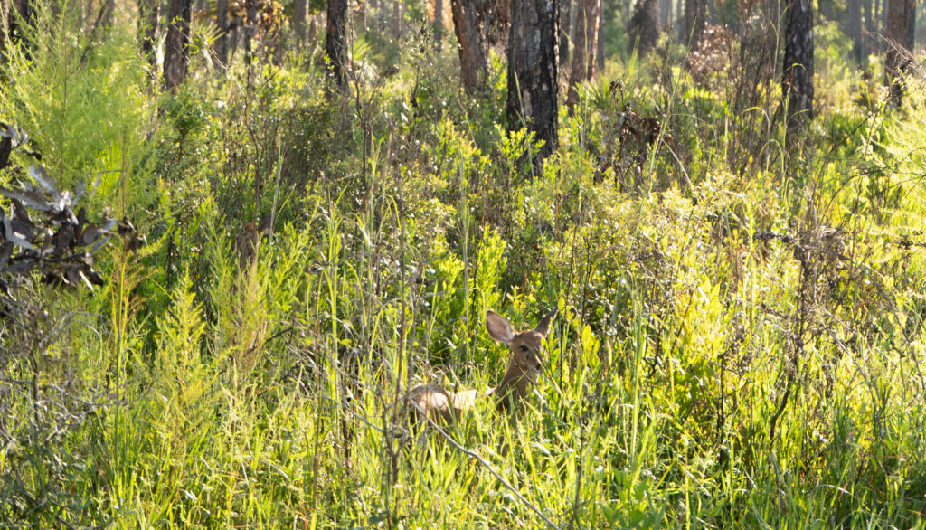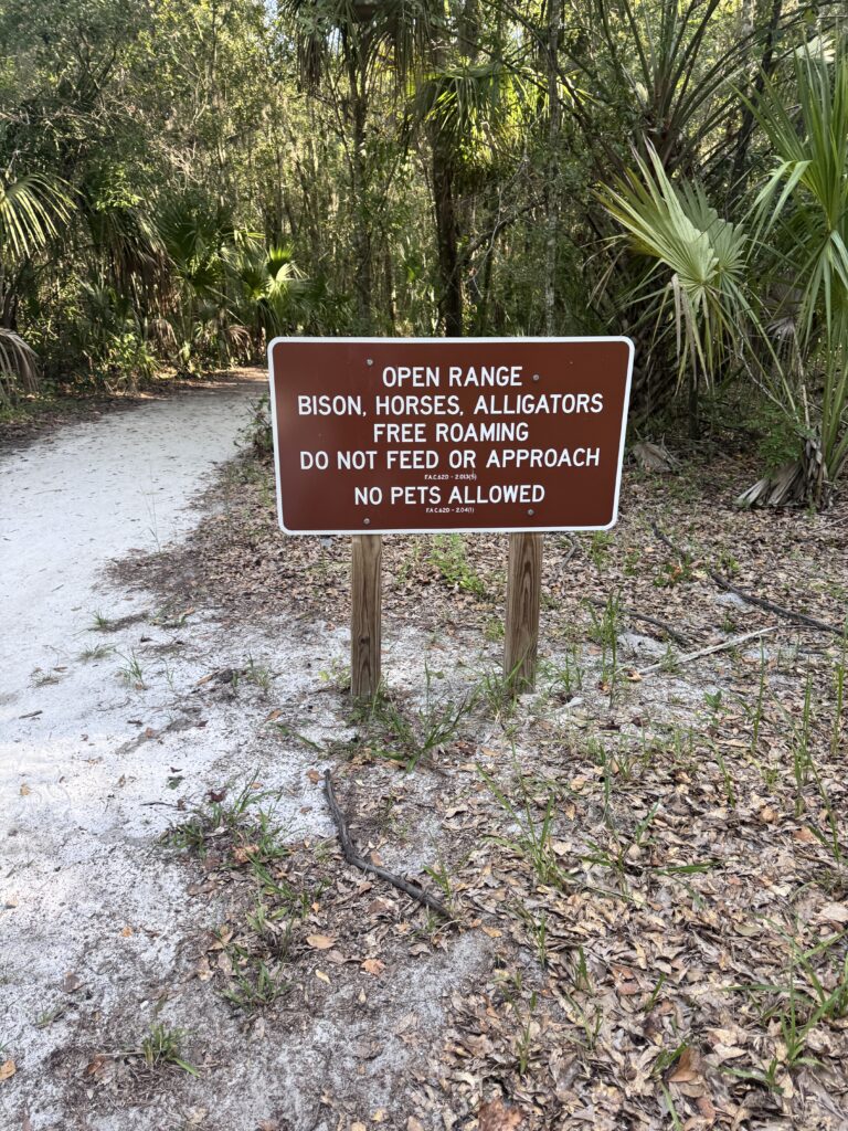 About a month ago, my co-worker and friend, Erin, called to ask if I wanted to go hiking at Paynes Prairie near Gainesville. I have lived in Florida for 23 years and have never explored that area, despite having a daughter who completed her undergrad at UF. Two weeks ago, Erin and I left at 6 am and drove the two hours north. It was a beautiful ‘Fake Fall” day here in Florida, which made it perfect for a morning hike. We saw lots of deer upon entering the Preserve, including this sweet baby who was watching suspiciously from the tall grass.